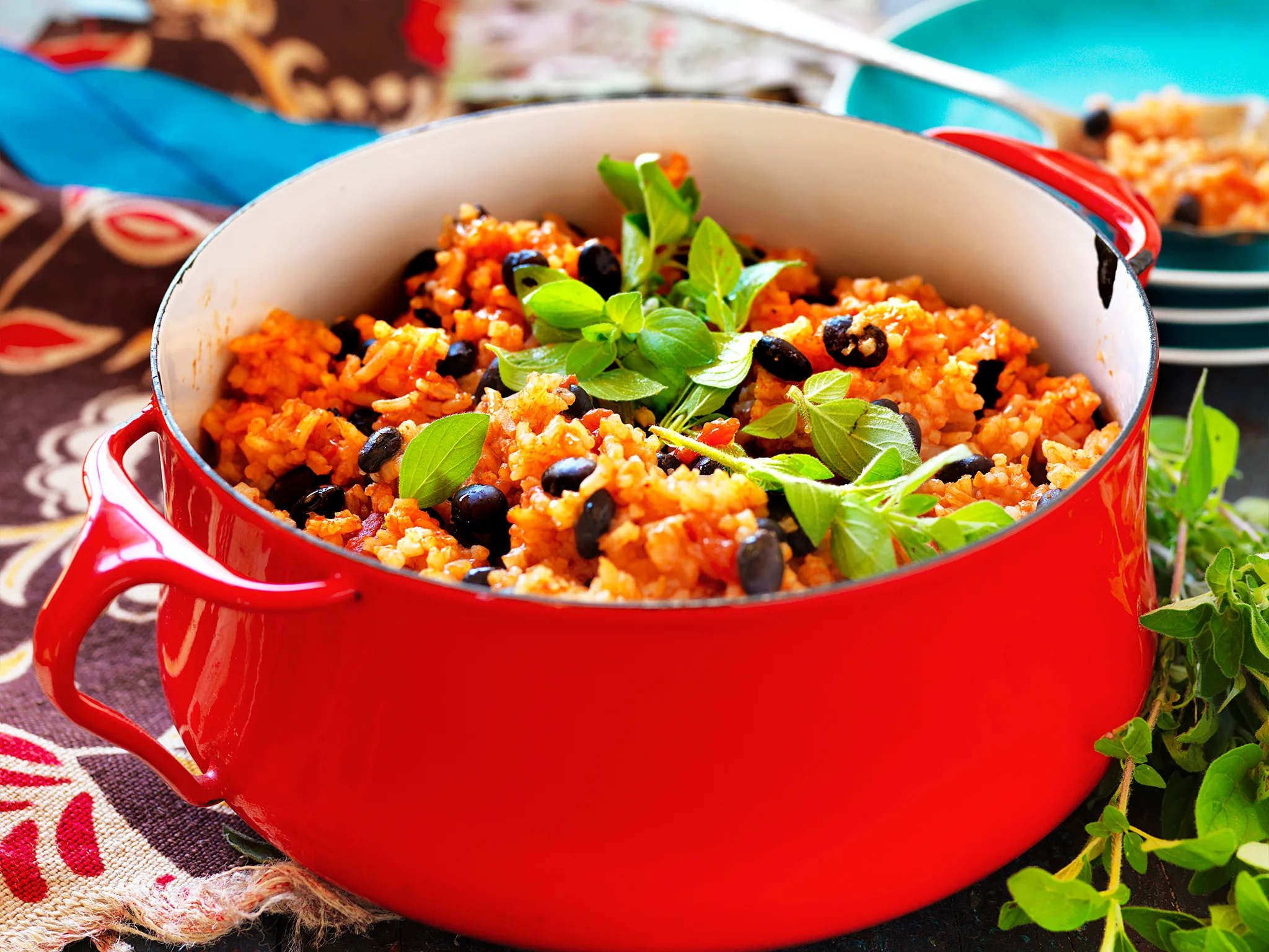 2.Remove from the heat. Fold in the beans and season to taste. Serve rice with a sprinkle of fresh oregano leaves, if desired.